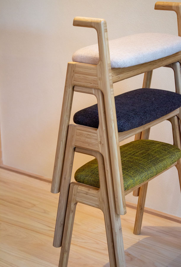 Designer_Ippei Kinoshita (TEORI R&D) 主材/竹集成材・ファブリック/ソフトレザー・ウレタンフォーム/リノリウム 仕上げ/[竹抗菌オイル仕上げ]または[ウレタン塗装仕上げクリア] 品番/T-US
